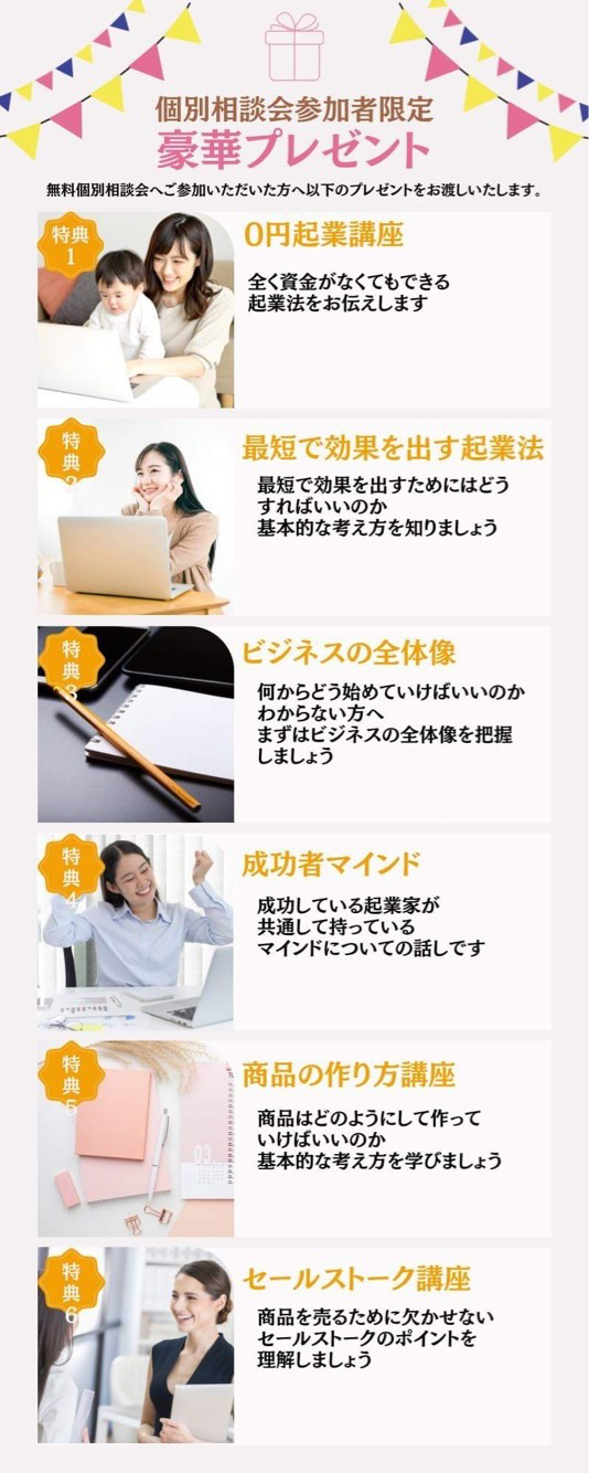 私はまったくのビジネス初心者で、WEBの知識もほとんどなく、ワーキングママとして働きながらスキマ時間で作業をし、半年程度でビジネスを立ち上げました。
